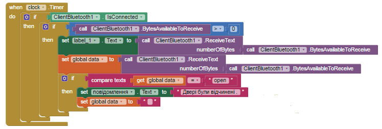 На рисунку 4.9 зображений текст зчитування даних з Bluetooth .